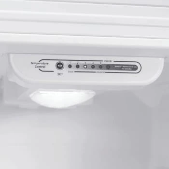 - Refrigerator door features 2-large shelves, 2-small shelves and butter tray